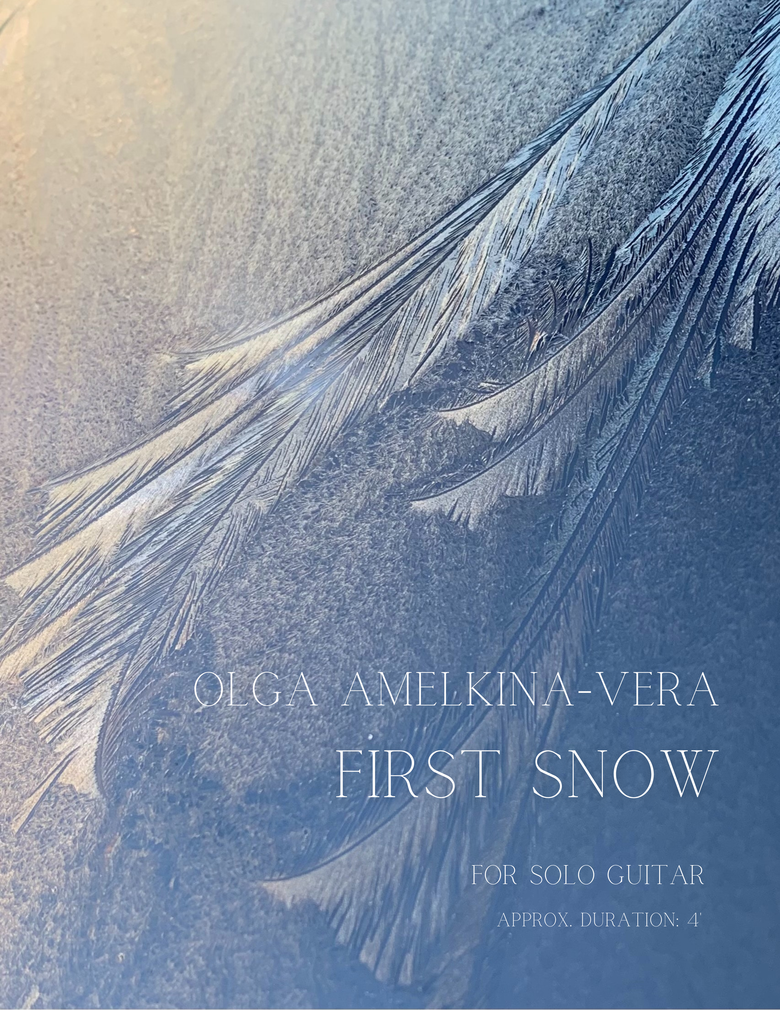 First Snow for solo guitar was commissioned in 2023 by Guitar Foundation of America for the GFA Spotlight Series. The piece was written for the young guitarist Vivian Wang, with whom I had the pleasure to work during the 2023 GFA Mentorship Program. Vivian's personality and playing style inspired this composition: a lyrical, jazzy first half leads into a lively section in the style of Brazilian samba. The title was meant to invoke the calmness and beauty of the first snowfall of the year, followed by children's rambunctious play outside in the snow.